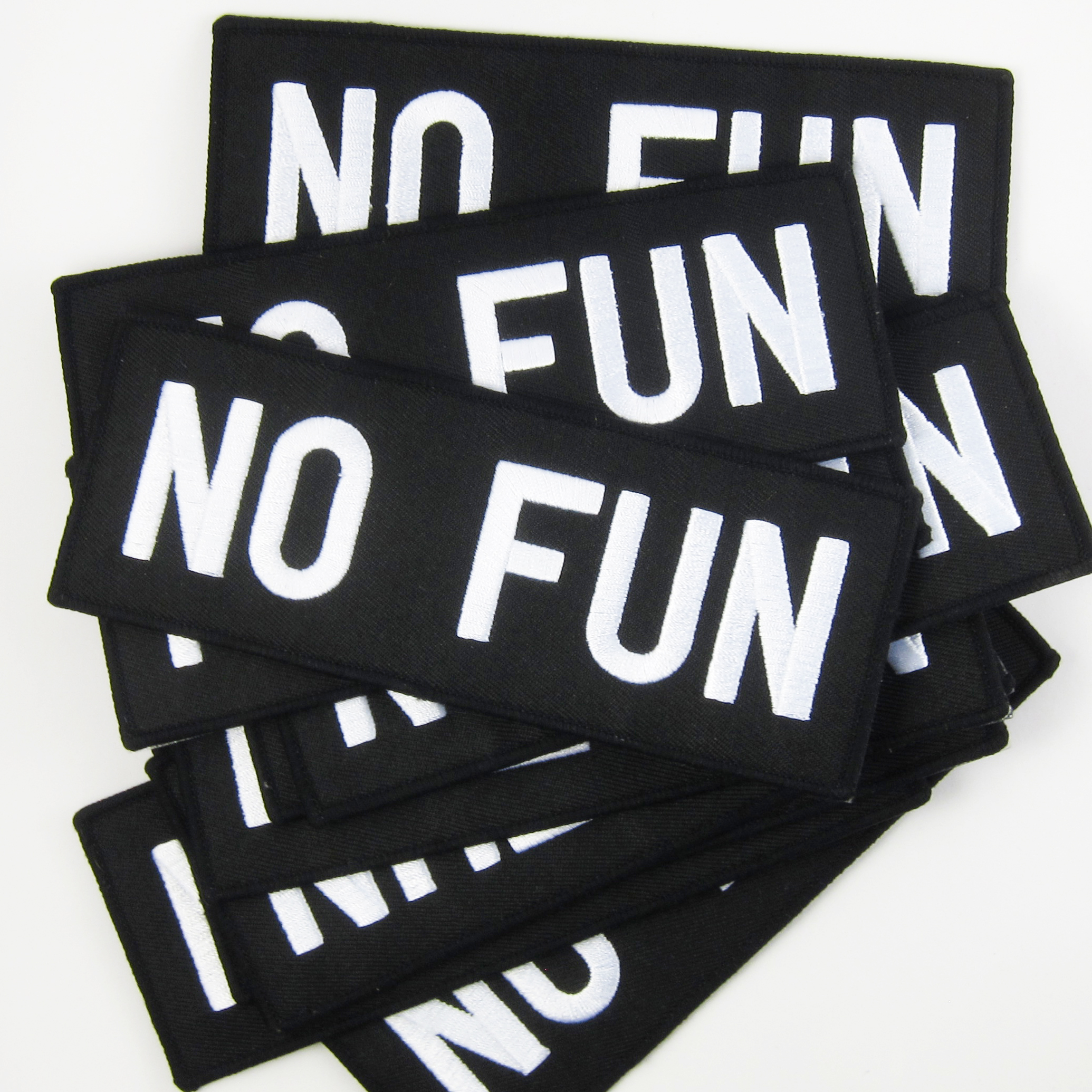 the No Fun B&W box logo on a high quality embroidered patch. 5" x 1.9"
