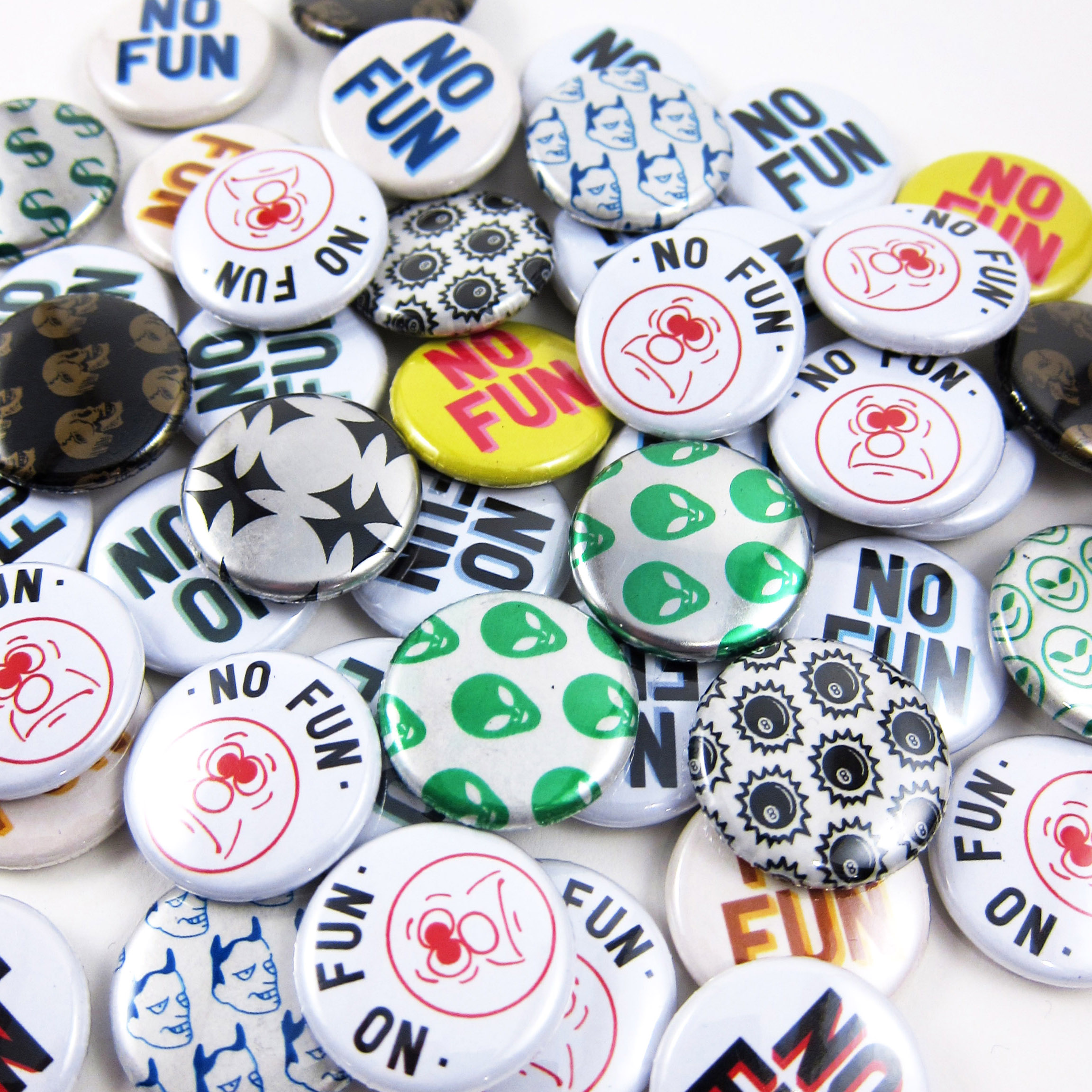 4 assorted 1" pins, designed and pressed by hand in our Toronto studios.